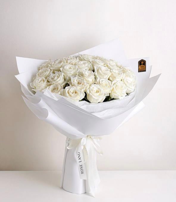 باقة "النقاء الأبيض" تجسد الصفاء والنقاء بأبهى صورة، تتكون باقة ورد أبيض من ورود بيضاء نقية مرتبة بعناية فائقة لتمنحك شعورًا بالهدوء والرقي، تُغلف الباقة بورق أبيض فاخر وتُربط بشريط ستان أبيض، مما يضفي عليها مظهرًا أنيقًا ومميزًا.