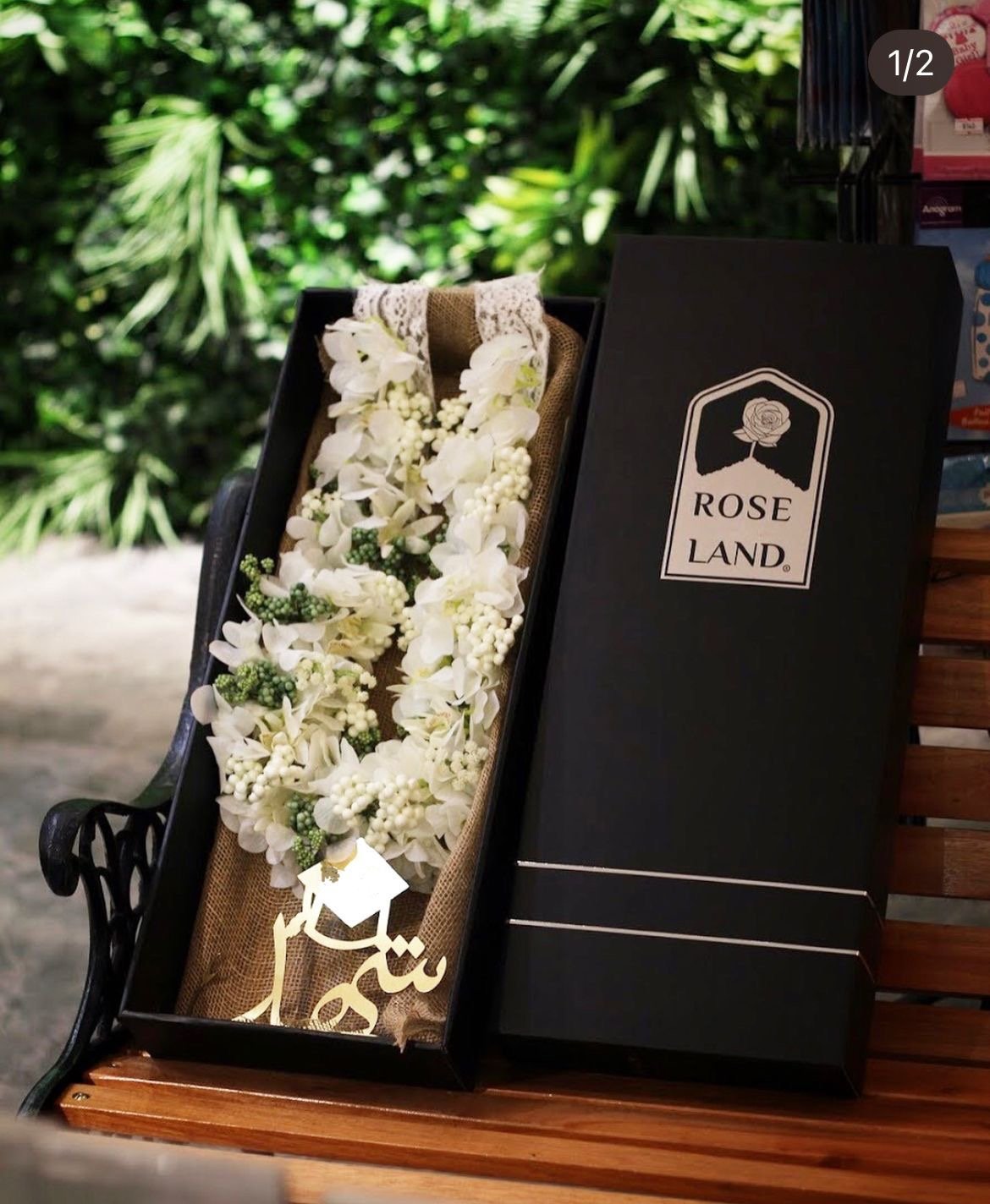 عقد التخرج من روز لاند هو الخيار الأمثل لإضافة لمسة من الفخامة والتميز في احتفال التخرج. يتميز بتصميمه الأنيق الذي يجمع بين زهور الفلينبسيس والهايبريكوم مع إكسسوارات صناعية تمنحه مظهرًا راقيًا وطبيعيًا. عقد الورد للتخرج مصنوع بعناية ليكون جزءًا لا يُنسى من هذه المناسبة المميزة، مع كتابة اسم المهدى إليه بشكل جميل.