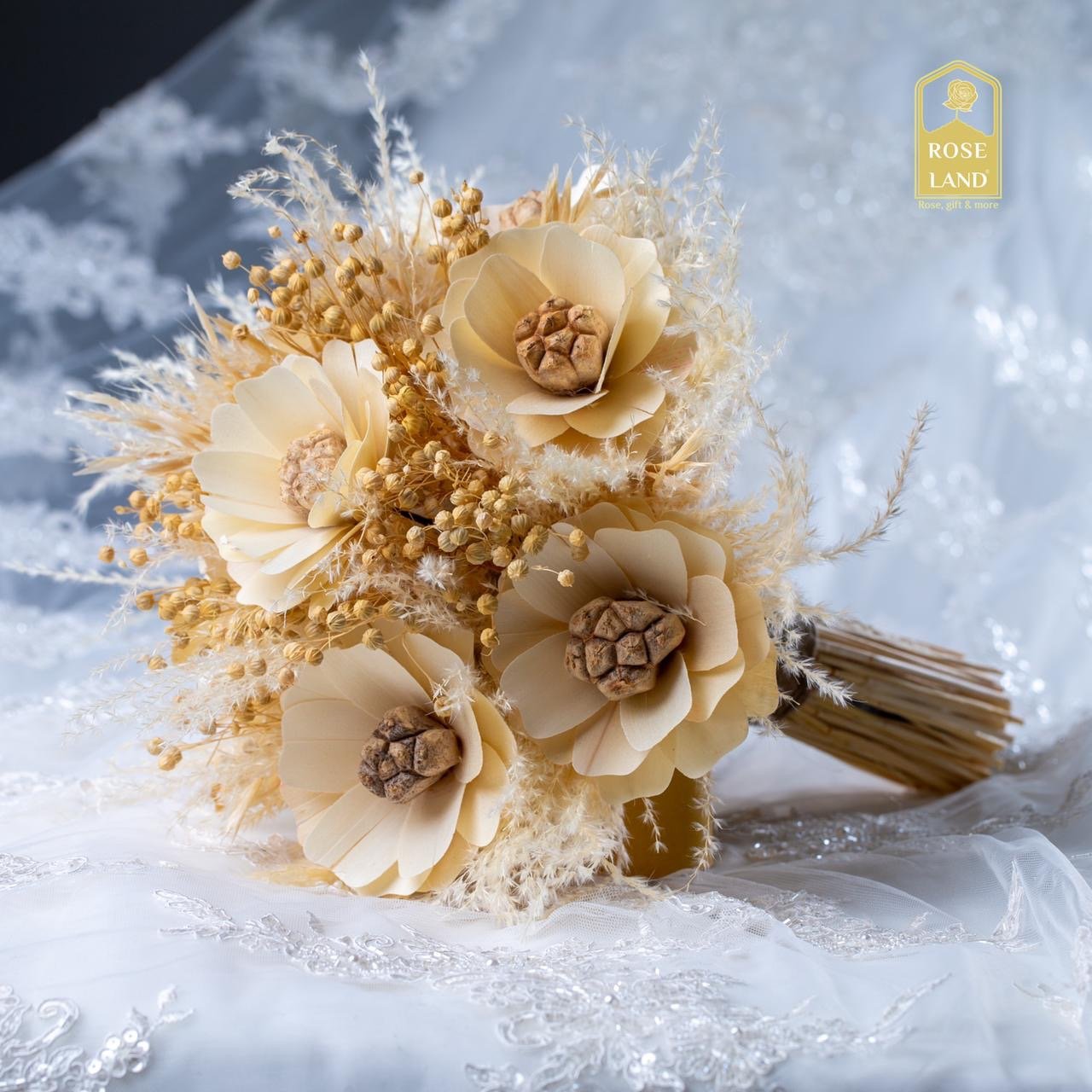 مسكة "عبق الربيع" هي تجسيد للجمال الطبيعي بأبهى صوره، حيث تتألف من تشكيلة راقية من الزهور الهولندية المجففة. مسكة ورد صناعي الفريدة تتميز بألوانها الدافئة والنقشات الطبيعية التي تمنحها طابعًا فريدًا يناسب العروس التي تبحث عن مظهر كلاسيكي وأنيق في يوم زفافها.